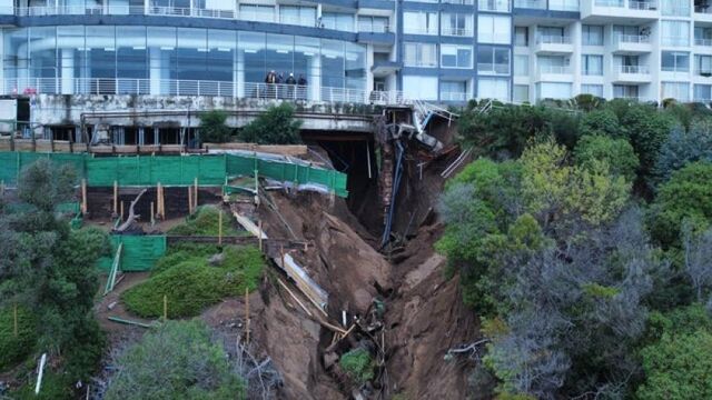 La Municipalidad de Viña del Mar declaró inhabitable el edificio Euromarina II, ubicado en Las Perlas N° 1855, tras el descubrimiento de un socavón que amenaza con afectar seriamente su estructura. El socavón, producto del colapso de un colector durante las intensas lluvias del pasado 9 de junio, mide aproximadamente 15 metros de longitud por 30 metros de profundidad.